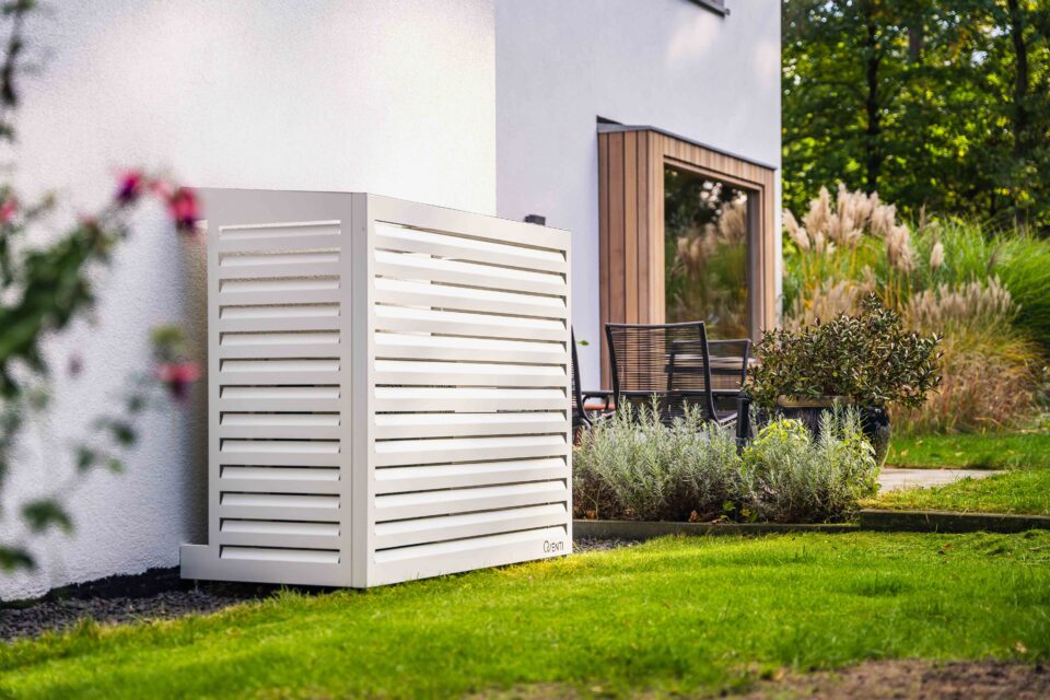 Stilfuld og funktionel varmepumpeskjuler i aluminium, designet til at give din udendørs enhed et mere diskret og æstetisk udtryk. Kabinettet reducerer visuel støj i omgivelserne og beskytter samtidig varmepumpen mod vejr og slid.